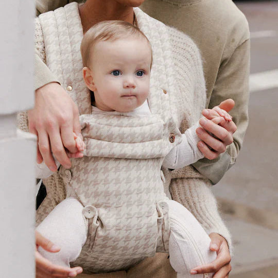 Littlemoon bære selen er skabt til at forene funktion og enkelt design. Det klassiske houndstooth mønster i beige og creme giver et roligt og tidløst udtryk, der passer ind i hverdagen.